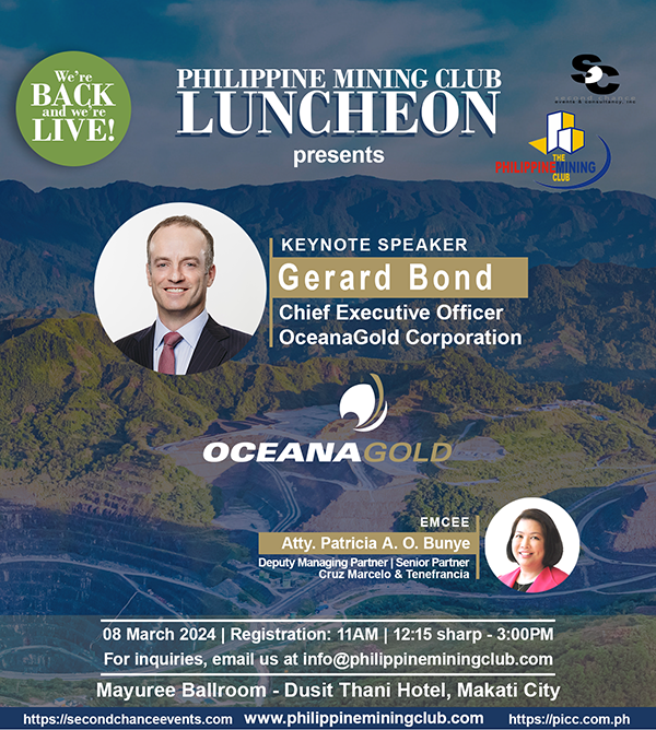 We invite you to the March 8Β Philippine Mining ClubΒ Luncheon, where our President and Chief Executive Officer Gerard Bond will serve as the keynote speaker.